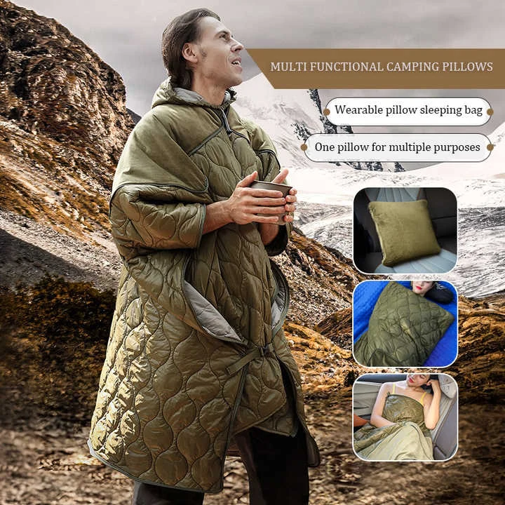 Defnyddiwch gobennydd, clogyn, blanced, bag cysgu
