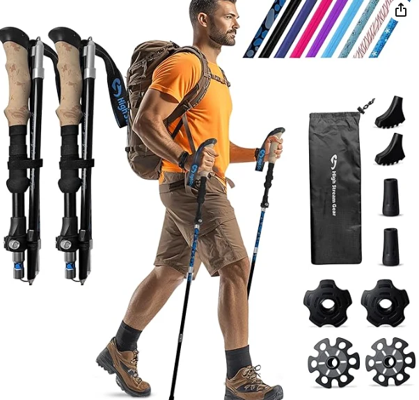 Polyn heicio nordig cwympadwy. Pwyliaid heicio wyneb ar gyfer backpack, ymarfer corff a theithio, set o 2 bolion merlota cwympadwy nordig alwminiwm