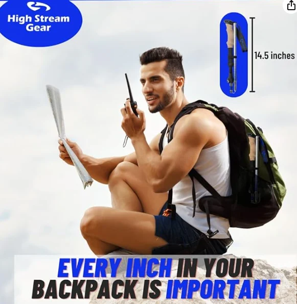 Mae polion heicio ar gyfer Hokiers yn cwympo i lawr i 37cm (14.5 modfedd) ac yn pwyso dim ond 10 owns yr un yn gadael eich lle ar gyfer eich hanfodion a'ch gêr personol.