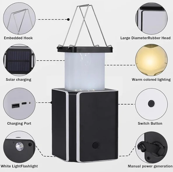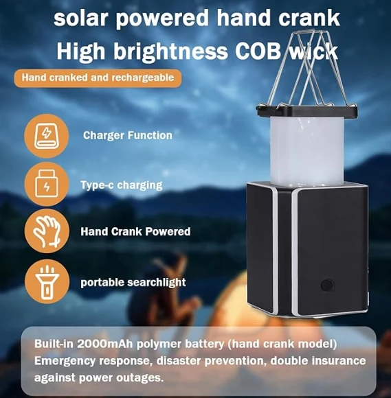 IPX4, Goleuadau Brys Cynhyrchu pŵer crank llaw, swyddogaeth pŵer symudol i gyflenwad pŵer ffôn symudol ,, goleuadau brys, flashlights, goleuadau rhybuddio SOS., Llusern gwersylla brys y gellir ei ailwefru gan solar, ailwefradwy solar, ailwefradwy solar, math C y gellir ei ailwefru, math C, math C, math C,