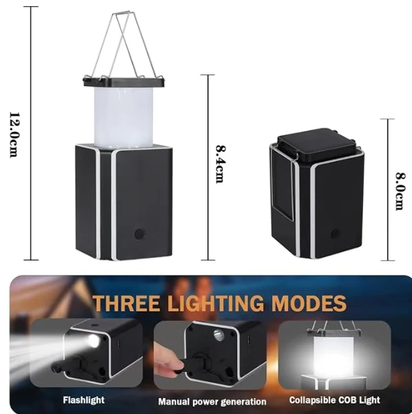 Golau gwersylla solar LED, goleuadau llusernau gwersylla brys cynhyrchu pŵer crank llaw. Os nad oes gennych wefrydd o gwmpas ac nid oes haul, mae'r generadur hwn sydd wedi'i grancio â llaw yn berffaith ar gyfer gwefru golau.
