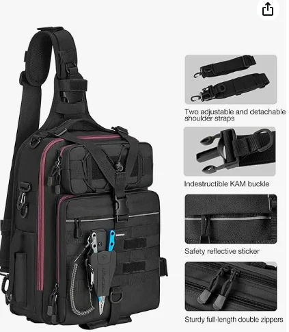 Mae strapiau ysgwydd datodadwy yn ei gwneud hi'n hawdd defnyddio'r bag hwn fel bag ysgwydd sling, backpack, bag llaw, bag cist, bag taclo pysgota, neu fag teithio. Gyda dwy wregys gwialen i ddal eich gwiail, gellir ymestyn y prif hyd strap hyd at 51.2 '', tra gellir ymestyn y strap cyswllt i 36.2 ''