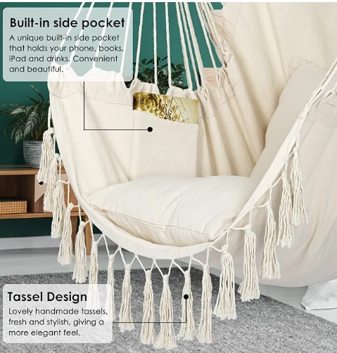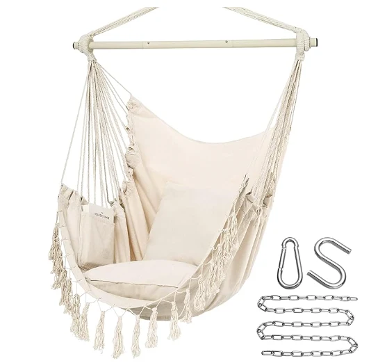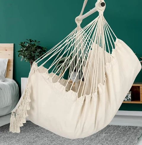 Gwnïo Hammock Parasiwt Crog. Yn ei hongian yn anad dim, unrhyw le. Dewch o hyd i gangen, trawst neu ffrâm hamog, cadair swing wych ar gyfer y tu allan neu'r tu mewn.Zhejiang Jiayu Outdoor Products Co., Ltd. Fe allech chi fyfyrio neu fwynhau'r golygfeydd yn hawdd. Mae'n addas iawn i'w ddefnyddio mewn ystafelloedd gwely, fel addurn ystafell, balconïau, cyrtiau a gerddi. Os oes angen dychwelyd arnoch chi, peidiwch â thynnu'r tag o'r gadair swing